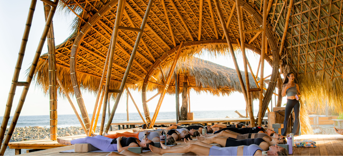 Between sessions, you’ll be held by the wild luxury of Mizata. Cold plunges to awaken the senses, saunas to soften what’s been held too long, oceanfront pools, jungle hammocks, and a full-service spa for deep restoration. The Pacific is always just steps away — boards waiting, waves rolling in, and the invitation to play.
