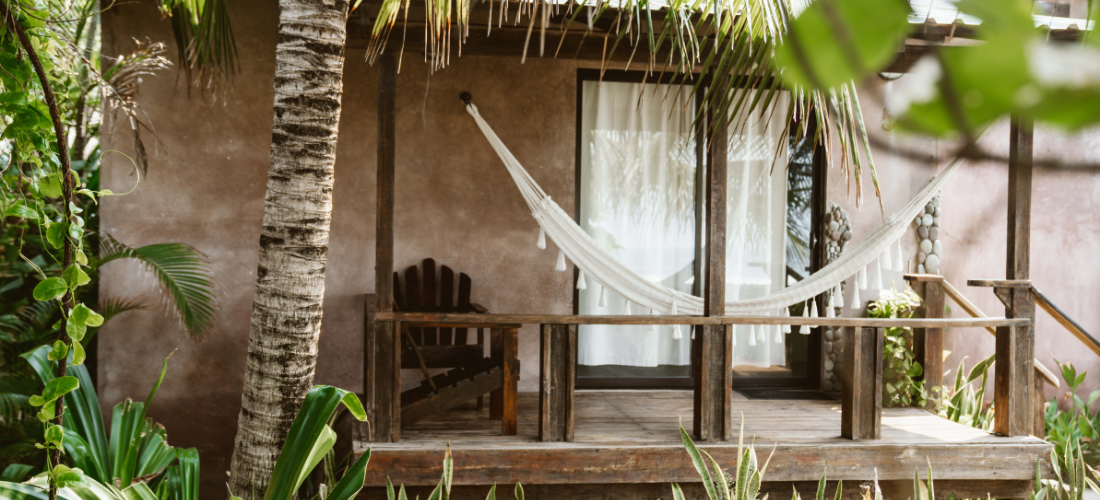 Steps from the ocean, this tranquil bungalow features a premium king bed, twin beds, and a private patio with hammocks overlooking the Pacific.