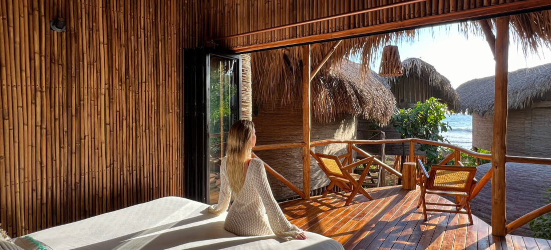Witness the majestic sunrises and sunsets right in front of you, from a Beachfront Treehouse by the beach! The king-size beds and porch offer breathtaking beachfront ocean views of the Pacific Ocean.